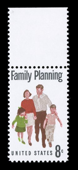 838 nh 1455a image#1455a, 8c Family Planning, yellow omitted, top sheet-margin single, o.g., n.h., very fine; only one sheet of 50 was ever discovered. (Image) $425.00