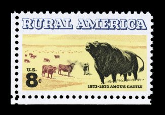 854 nh 1504a image#1504a, 8c Rural America, green and brown omitted, bottom left corner margin single, o.g., n.h., extremely fine and scarce. (Image) $850.00