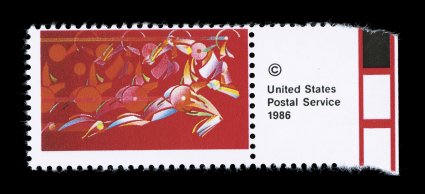 918 nh 2247a image#2247a, 22c Pan American Games, silver omitted, right sheet-margin USPS copyright single, centered to top right as are all thirty known examples, o.g., n.h., fine; 1993 PF certificate; ex-Floyd. (Image) $1,500.00