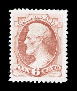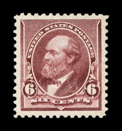 100 ogu 224 image#224, 6c Brown red, especially well centered within lavishly large margins, sumptuously rich color and a crisp detailed impression, o.g., lightly hinged, extremely fine; 2004 PSE certificate (XF-Superb 95 Jumbo; SMQ $380.00 for 95 and $680.00 for 98). (Image) $90.00