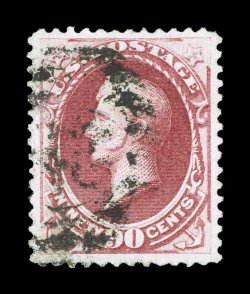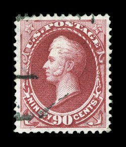 82 Ou 166 image#166, 90c Rose carmine, a wonderfully choice used single, featuring excellent centering within large margins, plus its color is especially deep and vibrant, sharp detailed impression on fresh white paper, light and unobtrusive cancel which is most unusual on this high value (most are quite heavily cancelled), extremely fine used gem; 2003 PSE certificate (XF-Superb 95; SMQ $1,850.00); the highest grade awarded to a used #166, being one of only three so graded. (Image) $275.00