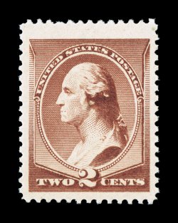93 nh 210 image#210, 2c Red brown, an exceptionally large jumbo-margined single being quite well centered within these lavish borders, sumptuously rich color and a razor-sharp impression, o.g., never hinged, extremely fine; seldom found so large; 2006 PSE certificate. (Image) $160.00