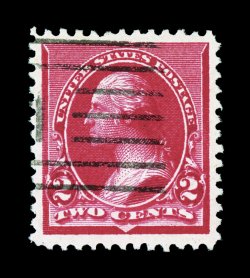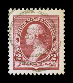 98 Ou 220c image#220c, 2c Carmine, cap on both "2's" variety, well centered within exceedingly large margins for this elusive variety, intensely rich color and a deeply etched impression, extremely fine; 2007 PSE certificate (XF 90 Jumbo; SMQ $210.00 for 90 and $465.00 for 95); this is the highest grade (mint or used) the PSE has assigned to #220c, and the only used example to grade 90J. (Image) $30.00