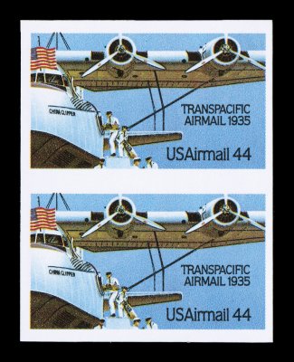 981 nh C115a image#C115a, 44c Transpacific Airmail, imperforate, vertical pair, o.g. n.h., very fine; a scarce air post error; 1992 PSE certificate. (Image) $800.00