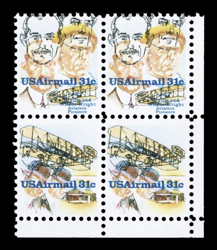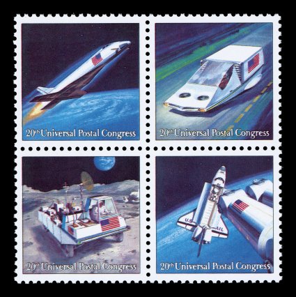 982 nhbl C125b image#C125b, 45c UPU Congress, se-tenant block of four, light blue omitted, excellent centering, pristine o.g., n.h., extremely fine and choice. (Image) $750.00