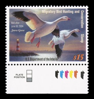 990 nh RW70c image#RW70c, 2003 $15.00 Multicolored, back inscription omitted, bottom sheet-margin single, o.g., n.h., extremely fine; an unusual an very rare error, with only twelve example recorded; 2004 PF certificate. (imagea) (Image) $4,500.00