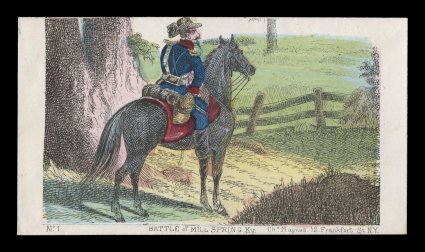1079 ogc imageCharles Magnus multicolor Battle of Mill Spring, Ky. patriotic series of twelve number designs, all in handpainted colors and showing the scenes of this battle that was one of two major Union victories in 1862, all are fresh on bright envelopes, choice very fine and rare as a full set; ex-Bleuler. (Image) Est. $300-400