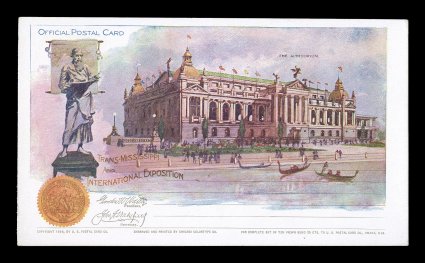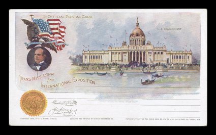 1140 ogc EX89-98 imageUPSS #EX89-98, Trans-Mississippi Exposition postal cards cplt. for the ten designs in mixed types as they were issued, another fresh set of these scarce postal cards, very fine; ex-Bleuler. (Image) UPSS $1,000.00