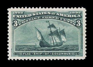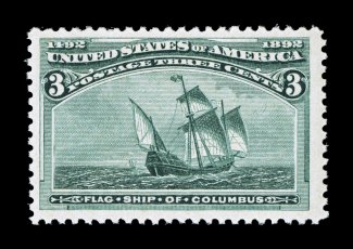 107 nh 232 image#232, 3c Columbian, pristine mint single, brilliantly fresh, gorgeous rich color and impression on bright white paper, outstanding centering within wide margins, immaculate o.g., never hinged, extremely fine; 2006 PF certificate. (Image) $150.00