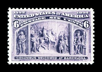 109 nh 235 image#235, 6c Columbian, exceedingly well centered within much larger margins than usually found on this value, deeply rich color, pristine o.g., n.h., extremely fine; 2004 PSE certificate. (Image) $225.00