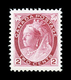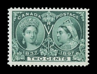 1283 nh 52 image#52, 1897 2c Jubilee, exceptionally well centered within extraordinarily large margins, sumptuously rich color and a detailed impression, o.g., n.h., extremely fine; 2006 PF certificate (Unitrade C$105.00). (Image) $55.00
