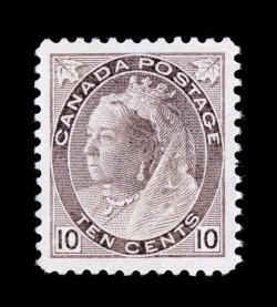 1290 nh 83 image#83, 1898 10c Brown violet "Numeral", choice mint example, fresh with attractive color in a lovely pastel shade and excellent clarity of impression, exceptionally well centered within uncharacteristically large margins, o.g., n.h., extremely fine; seldom encountered in this premium never hinged condition (Unitrade C$1,500.00). (Image) $67.00