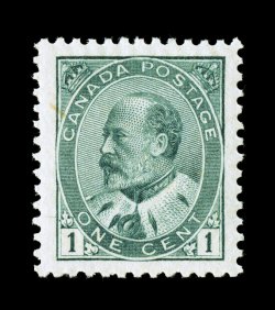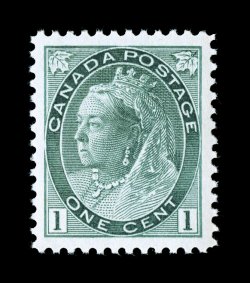 1291 nh Unitrade #75i imageUnitrade #75i, 1898 1c Green "Numeral", "post office" fresh gem single, precisely centered within large balanced margins, deep rich color in the pure green shade that is far more attractive than the gray green more commonly seen, o.g., n.h., extremely fine and exceedingly choice (Scott #75 var.; $45.00 for normal gray green). (Image) Unitrade C$120.00
