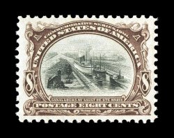 90 SMQ $670.00).#298, 8c Pan-American, exceptionally well centered within wide margins, strong rich colors and excellent impressions, o.g., n.h., extremely fine; encapsulated PSE certificate (XF 90; SMQ $670.00). (Image) $280.00