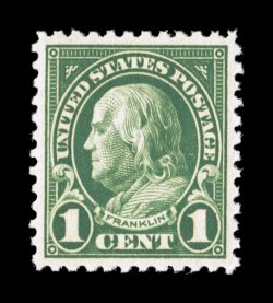 one stamp grades higher (98J).#552, 1c Deep green, impeccably well centered, rich luxuriant color and a razor-sharp impression, o.g., n.h., extremely fine gem; 2007 PSE certificate (Superb 98; SMQ $290.00); only one stamp grades higher (98J). (Image) $2.75