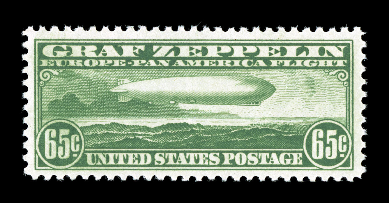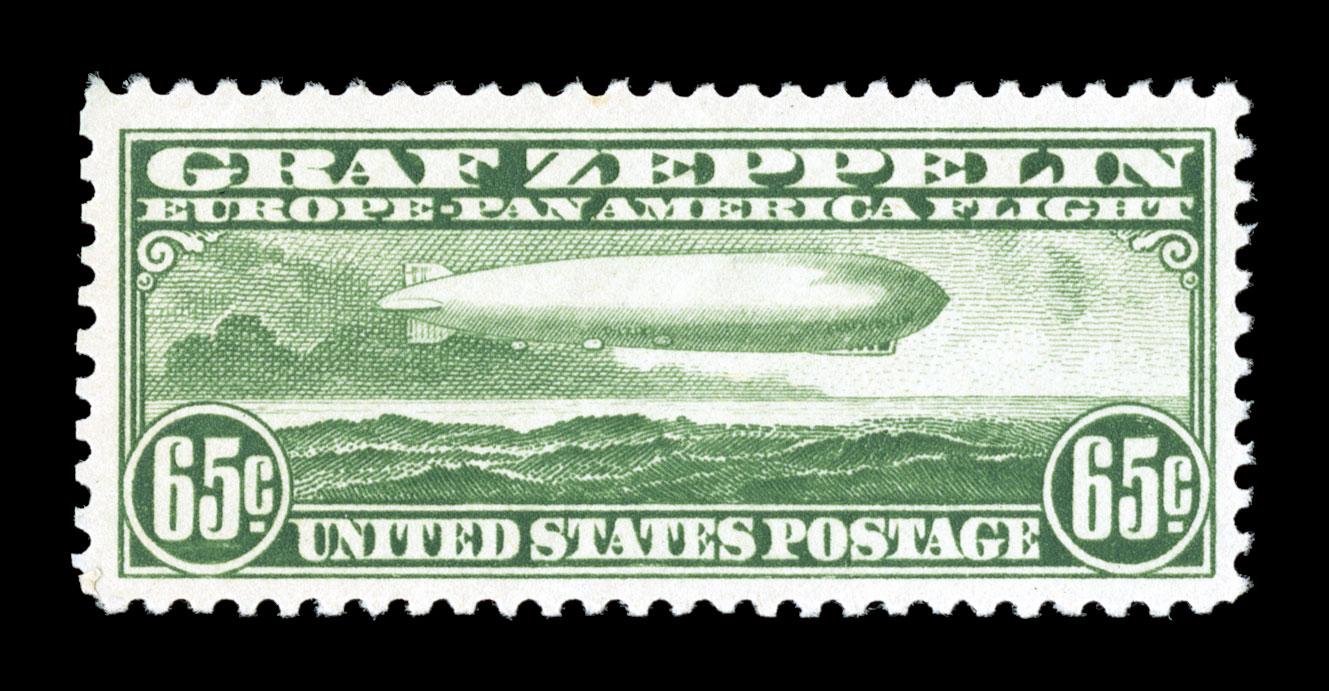 certificate (Superb 98 SMQ $420.00).#C13, 65c Graf Zeppelin, essentially perfect centering within uncharacteristically large margins, rich bright color, o.g., faint trace of hinging, an extremely fine gem; 2004 PSE certificate (Superb 98; SMQ $420.00). (Image) $250.00