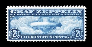 1033 nhu C15 C15, $2.60 Graf Zeppelin, a magnificent mint example that is one of the finest $2.60 Graf Zeppelins we have ever offered in our auctions, as this stamp boasts mathematically