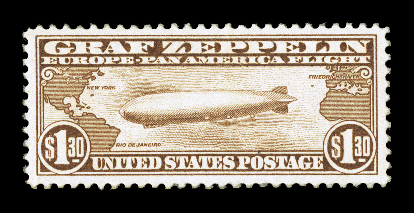 1032 nhu C14 C14, $1.30 Graf Zeppelin, an highly select mint single, with extravagantly large margins all around and being remarkably well centered within them, deep luxuriant color,