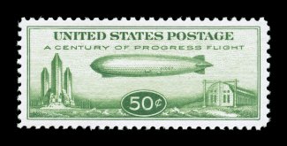 large-margined gem 2007 PSE certificate (XF-Superb 95 SMQ $200.00 for 95 a#C18, 50c Graf Zeppelin, exceedingly well centered within enormously large margins for this, bright color on crisp white paper, unblemished o.g., n.h., extremely fine; a large-margined gem; 2007 PSE certificate (XF-Superb 95 Jumbo; SMQ $200.00 for 95 and $420.00 for 98). (Image) $100.00