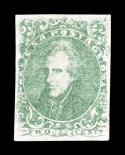 1285 ng 3 3, 2c Green, unused, large margins all around, warm color, bright fresh paper, extremely fine 1989 PF certificate.#3, 2c Green, unused, large margins all around, warm color, bright fresh paper, extremely fine; 1989 PF certificate. (Image) $525.00