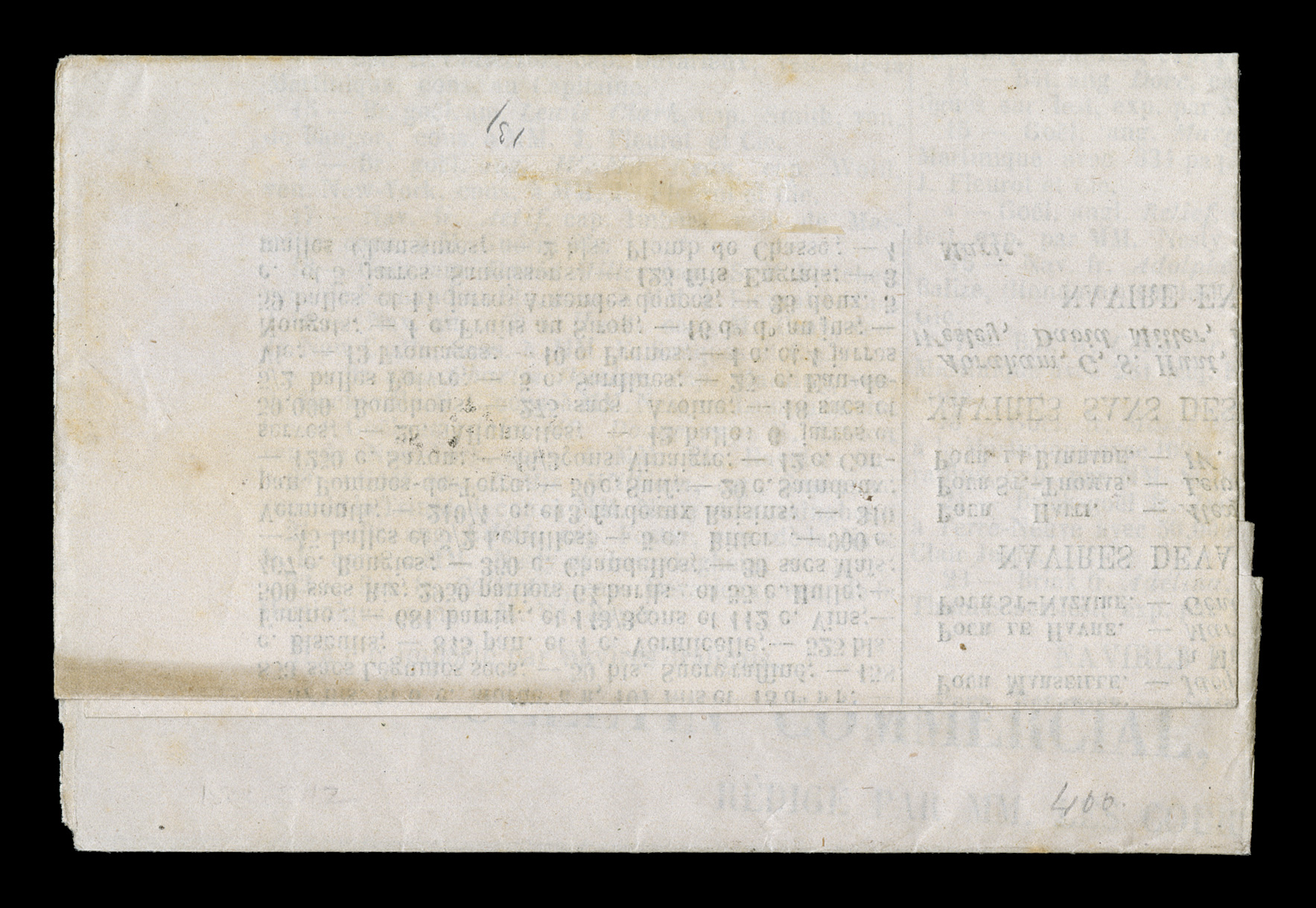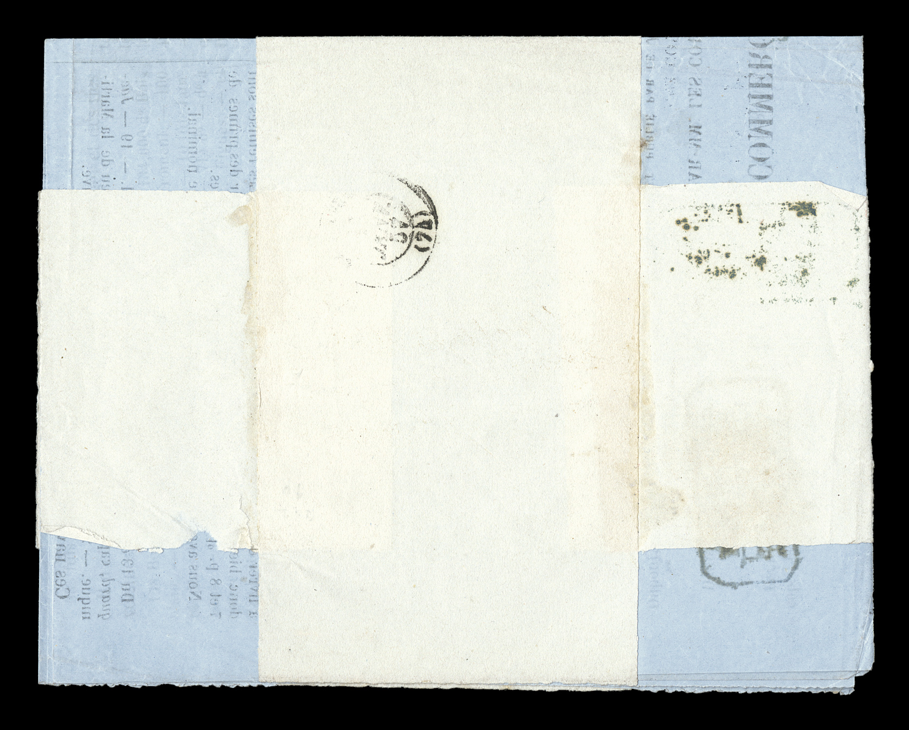 192 c 1856 Pointe-a-Pitre paid stampless printed matter entire folded bulletin to France, two wrappers crisscrossed around the bulletin, all beautifully intact with black