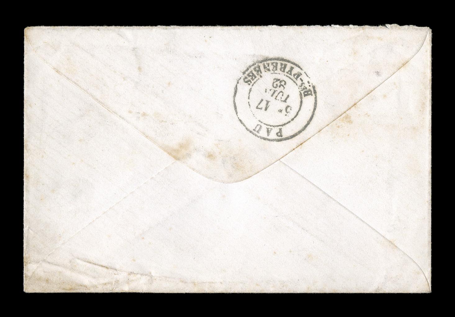 attractive stamp with four even margins tied to petite cover to FranFrench Colonies Yvert #17, 1872 5c Green on blue, an enormously rare single franking of this 5c Ceres value paying the relatively new U.P.U. 5c foreign mail printed matter rate, attractive stamp with four even margins tied to petite cover to France by "Guadeloupe/Basse Terre/20 Mai 82" small double-circle c.d.s. with similar strike at left, red Line "B" French packet transit, backstamped Pau, minor cover wrinkles in the bottom right corner and small stain, still very fine and attractive; by this time the Ceres issue was rarely in use, making for an unusually rare proper single franking of this value; one of very few known if not the only recorded example. (imagea) (Image) Est. $1,000-1,500