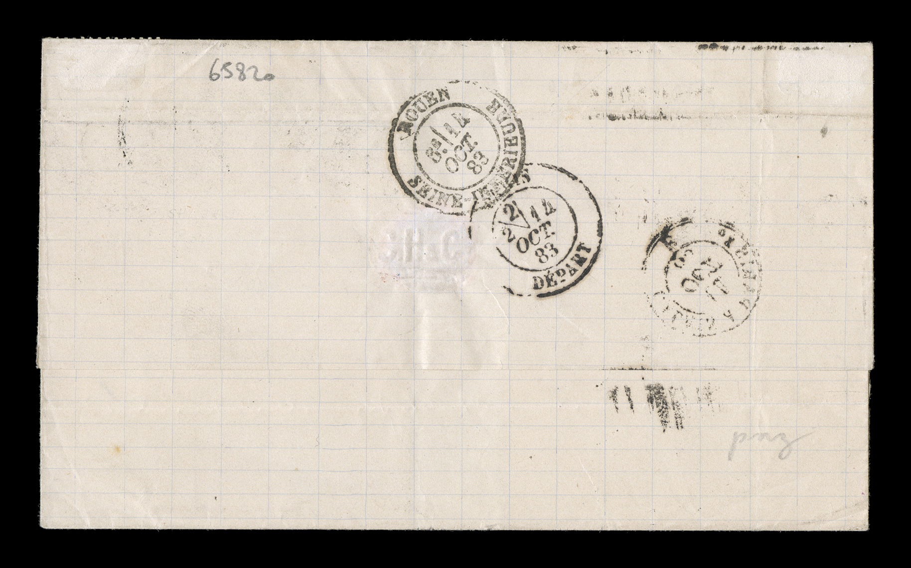 well struck black GuadeloupePointe-a-Pitre26 Sept 83 with additionFrench Colonies Yvert #49, 50, 1881 5c Green and 10c Black on lilac, two singles of the latter, an attractive and fresh franking for the 25c U.P.U. rate to France, all tied by well struck black "Guadeloupe/Pointe-a-Pitre/26 Sept 83" with additional strike at left, carried by British packet with black Paris-Calais entry transit, Paris transit on the reverse, backstamped Rouen, very fine and handsome cover; illustrated on page 72 of the Dubus handbook. (imagea) (Image) Est. $200-300