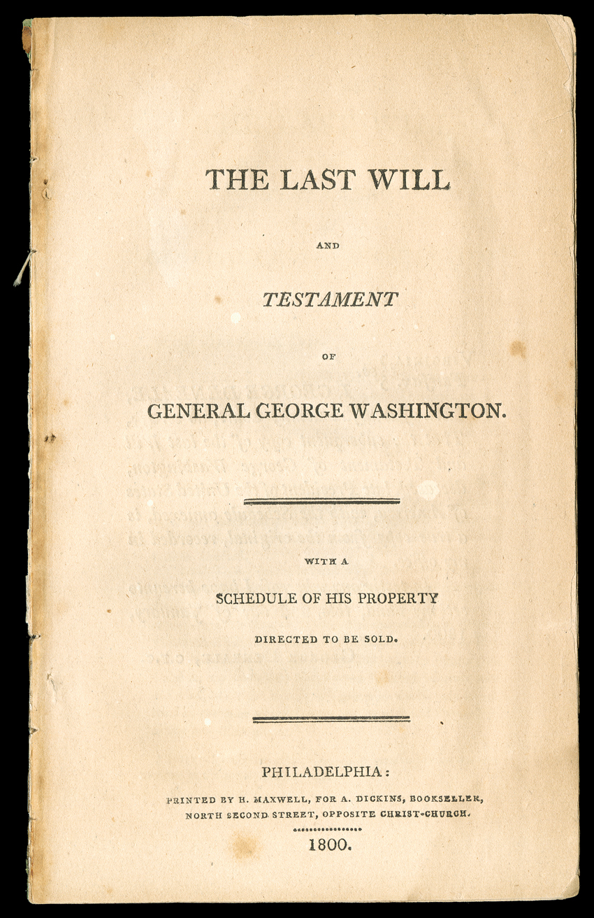 505   [Washington, George] Three scarce items surrounding the estate of the Father of his Country. Includes the Booklet The Last Will and Testament of General George Washington with a