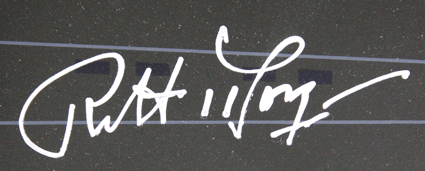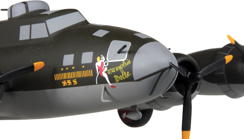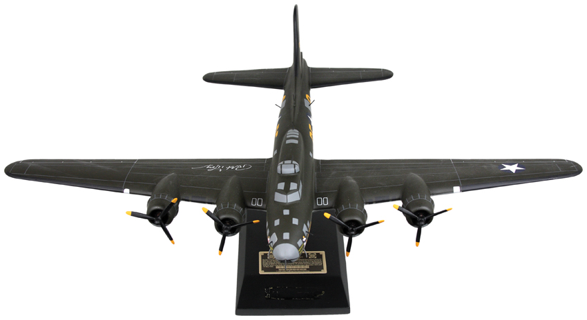 occupied Europe later served in the Pacific Theater, leading the fi"Memphis Belle": Robert Morgan American military aviator (1918-2004); piloted the Memphis Belle B-17 bomber when it became first to survive 25 daytime raids over Germany and occupied Europe; later served in the Pacific Theater, leading the first B-29 mission over Tokyo and logging another 25 missions; awarded the Distinguished Flying Cross with 2 Oak Leaf Clusters and the Air Medal with 10 Oak Leaf Clusters. A most unusual hand-painted plastic Model Airplane Signed "Robt. Morgan" on the right wing. A scale model of the B-17F Memphis Belle, named after Margaret Polk, Morgan's sweetheart; wing span 23", length 17", roughly a 1:54 scale. Held by a wooden base bearing a plaque produced by Morgan. A second plaque has been removed from the base, leaving glue residue, but the plane itself is VG/F. While dropping over 60 tons of ordnance over enemy territory, the plane did not lose a crew member, though nearly all its major parts had to be replaced at one or another time due to damage. After its 25th mission, its crew flew it home to the United States, where it promoted war bonds. With a presentation letter including a brief history of the bomber, a photograph of Morgan signing one of the models, and VHS cassettes of both the 1990 Warner Brothers feature film Memphis Belle, about the plane's last bombing run, and the 1944 documentary The Memphis Belle: Story of a Flying Fortress. (imagea) (imageb) (imagec) (Image) Est. $200-300