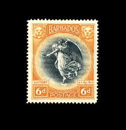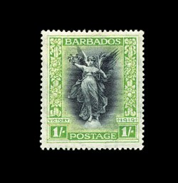 S.G. #209a, 1920 1/- Victory, "C" of "CA" missing in watermark, fresh mint single with bright colors, the watermark on the high values is normally sideways and the error clearly shows at right, o.g., very fine and very scarce, this purported to be the discovery example for the error on this v