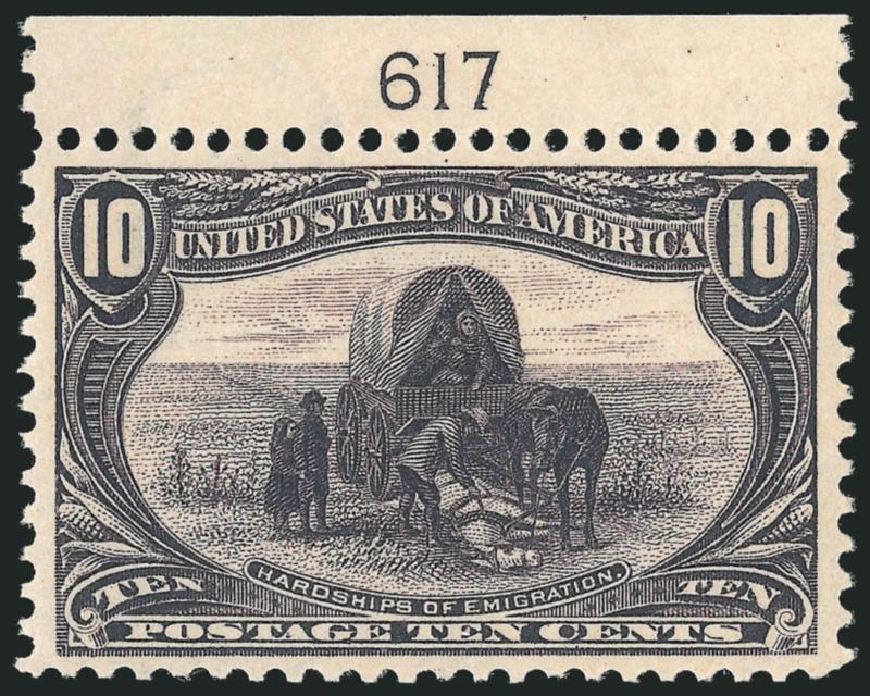 10c Trans-Mississippi (290). Mint N.H. with plate no. 610 at top, deep rich color and proof-like impression, beautiful centering with well-proportioned marginsEXTREMELY FINE. A