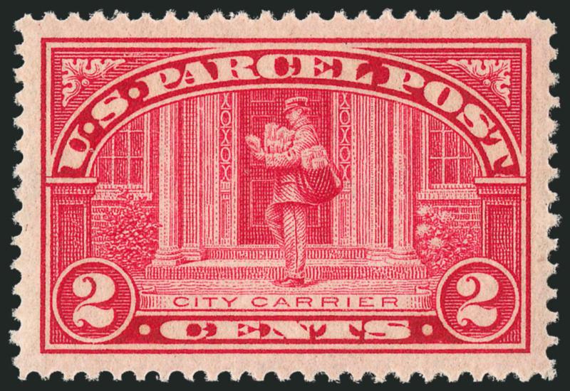 The 50c and $1.00 stamps are the key values to the set of 1913 Parcel Post stamps and the 50c is regarded as the most challenging to find in superb condition. This stamp, with its perfect centering, brilliant color, Mint N.H. gum and overall freshness would be a key addition to a superb collection of never-hinged stamps.