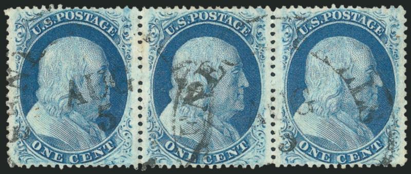VERY FINE APPEARANCE. A RARE ORIGINAL-GUM BLOCK OF SIX OF THE 1857 ONE-CENT TYPE Va FROM PLATE FIVE. VERY FEW LARGE MULTIPLES ARE KNOWN.