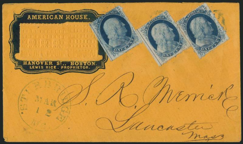FINE-VERY FINE APPEARANCE. A RARE AND ATTRACTIVE MULTIPLE FROM PLATE SEVEN WITH PLATE NUMBER AND PART IMPRINT SELVAGE AT RIGHT.