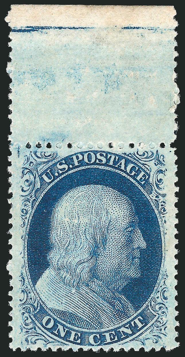 outside of the design at top, ex Neinken1c Blue, Ty. V (24). Position 5R8 with wide selvage at top, unused (no gum), bright color, choice centering, tiny surface scuff, Extremely Fine appearance, A Relief stamps show two short vertical lines outside of the design at top, ex Neinken (Image)