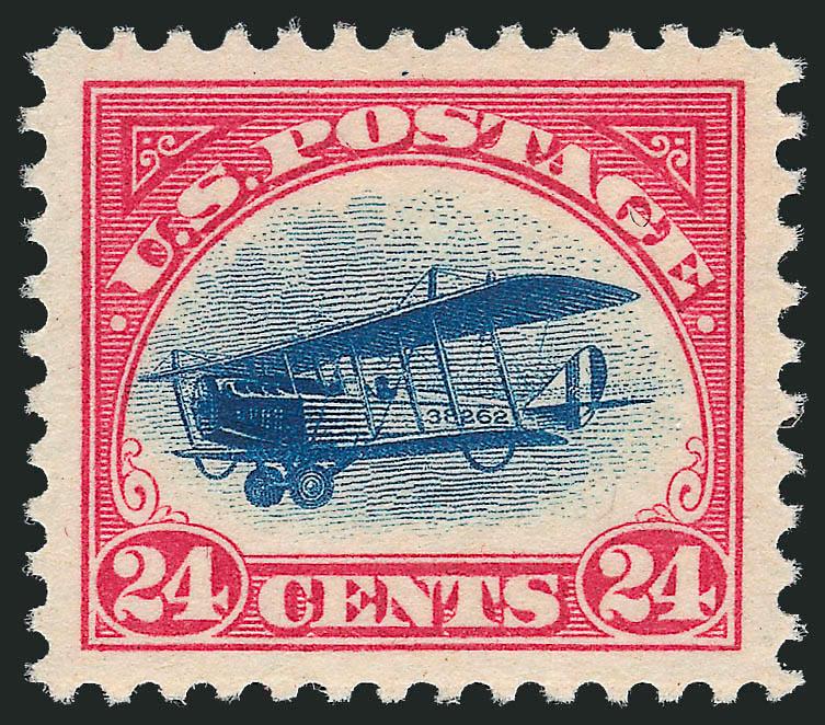24c Carmine Rose & Blue, 1918 Air Post (C3). Mint N.H., brilliant colors, mathematically perfect centering, long and full perforations all around, Extremely Fine Gem, a phenomenal stamp, with 2011