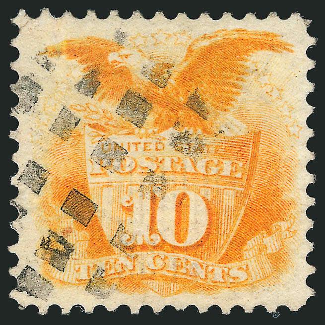 3283   1c-90c 1870 Bank Note Grill (134-139, 141, 144). variety of cancels, 7c with very attractive Geometric, couple reperfed, otherwise generally Fine appearance, also incl. 30c No. 143 defective and not counted (Scott Retail $4,000.00)
