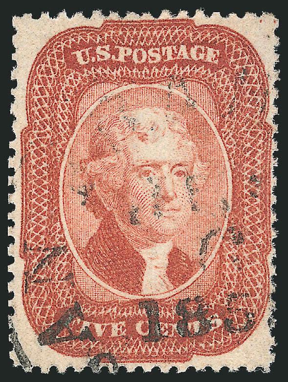 2155   5c Brick Red (27).> Exceptionally well-centered with perfs clear all around, rich color, light San Francisco circular datestamp, Very Fine, with 2010 P.F. certificate5c Brick Red (27). Exceptionally well-centered with perfs clear all around, rich color, light San Francisco circular datestamp, Very Fine, with 2010 P.F. certificate (Image)