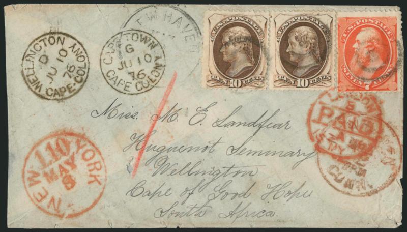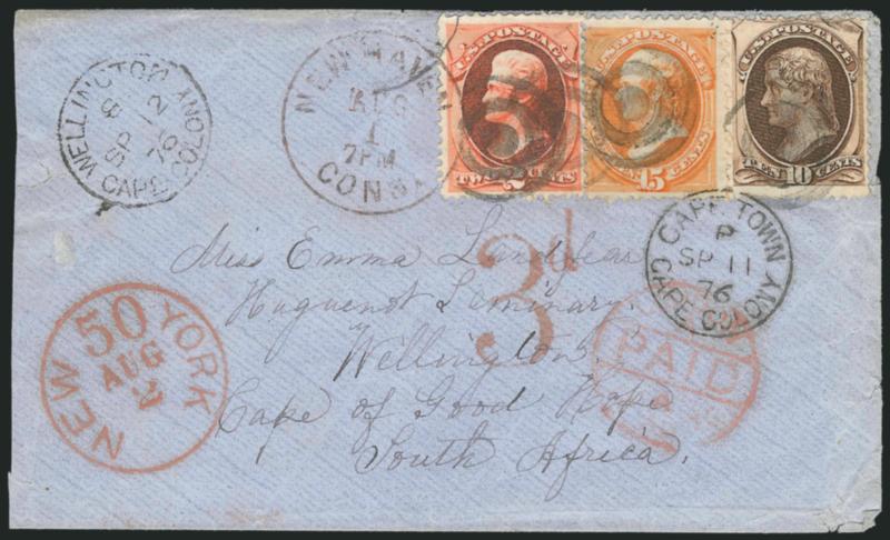 THE FINER OF TWO RECORDED EXAMPLES OF THE 1870 24-CENT NATIONAL BANK NOTE COMPANY GRILLED ISSUE ON COVER. ONLY RECENTLY IDENTIFIED AS A GRILLED STAMP AND CERTAINLY AMONG THE MOST IMPORTANT LARGE BANK NOTE ISSUE COVERS EXTANT.