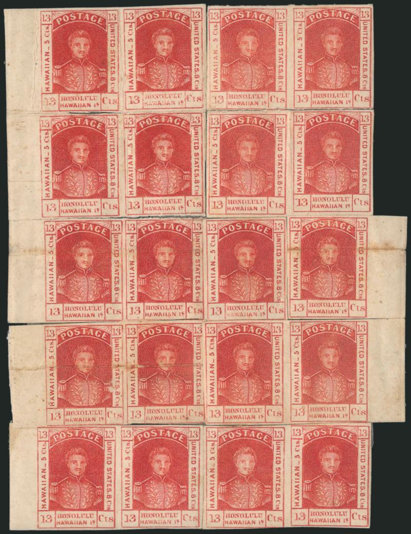 THE LARGEST RECORDED MULTIPLE OF THE 13-CENT KAMEHAMEHA III ISSUE AND ONE OF THREE, POSSIBLY FOUR, BLOCKS EXTANT.