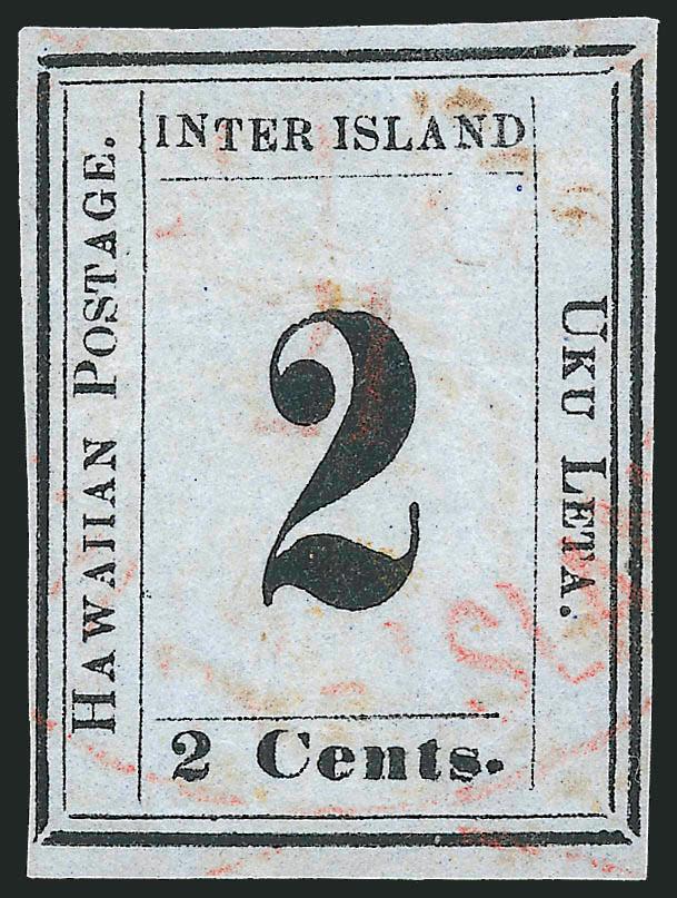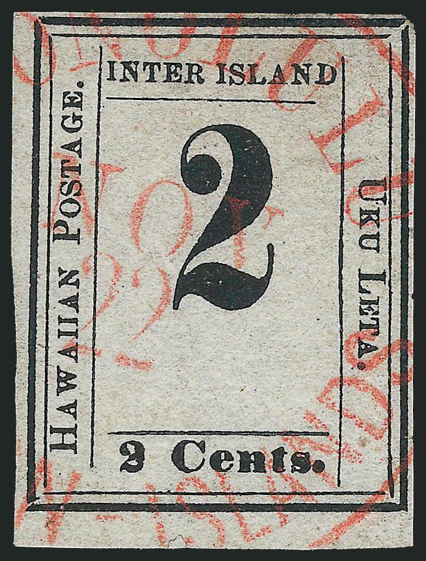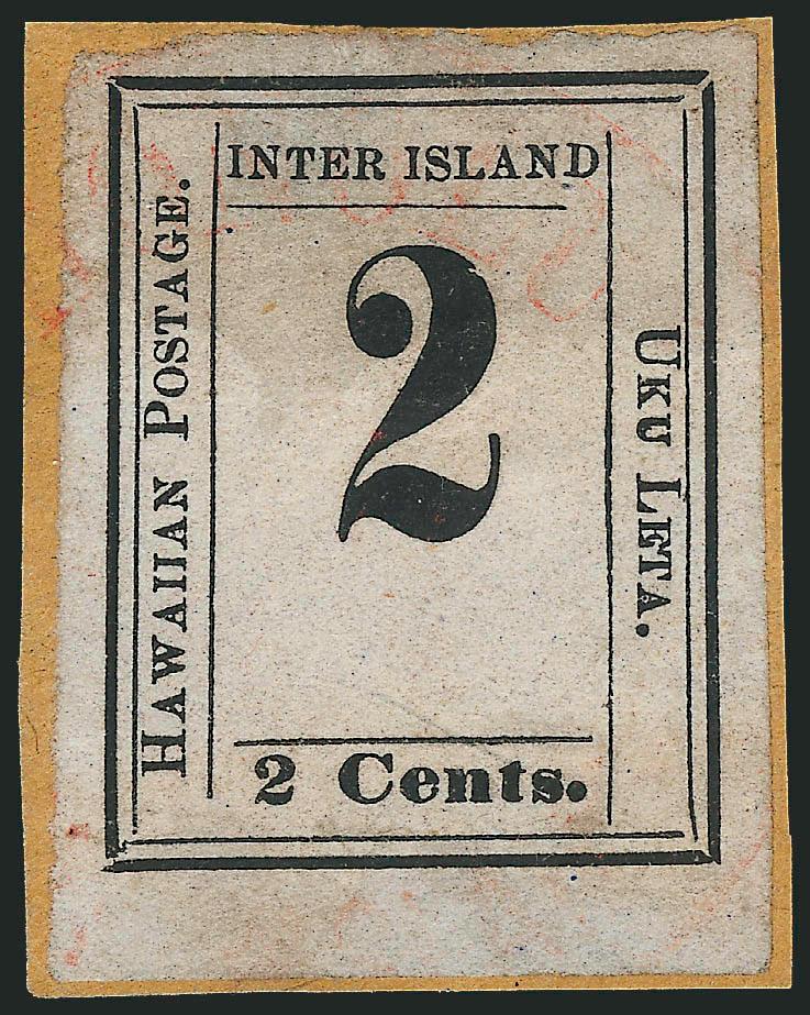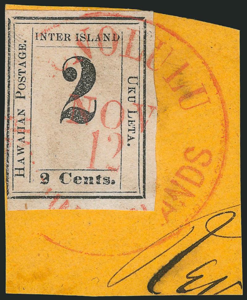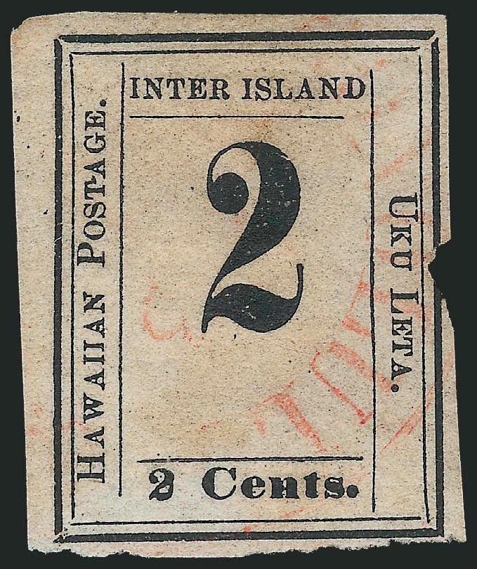 The distinctive Collector's Office marking, used as a cancellation in Hilo during the Numeral Issue period, was struck in a brownish-black ink that is rarely found with a clear impression.