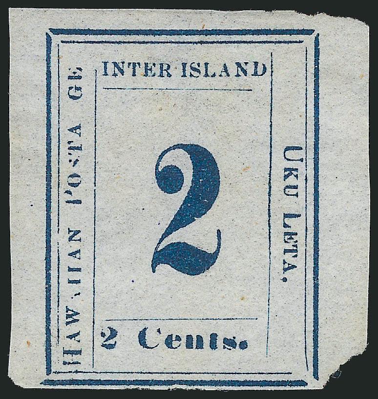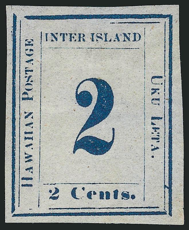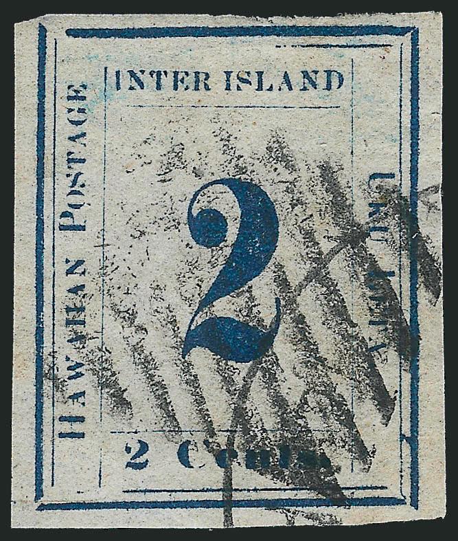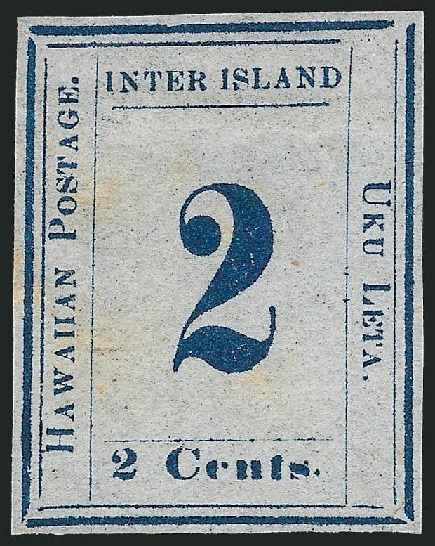 EXTREMELY FINE. A MAGNIFICENT SOUND UNUSED EXAMPLE OF THE 1863 2-CENT DARK BLUE ON BLUISH PAPER. ONE OF THE RAREST OF ALL HAWAIIAN NUMERAL ISSUES.