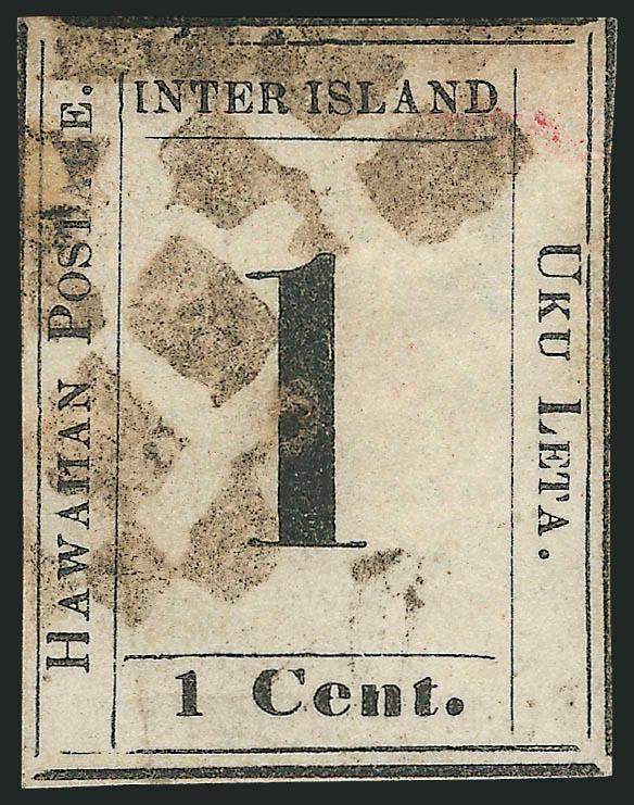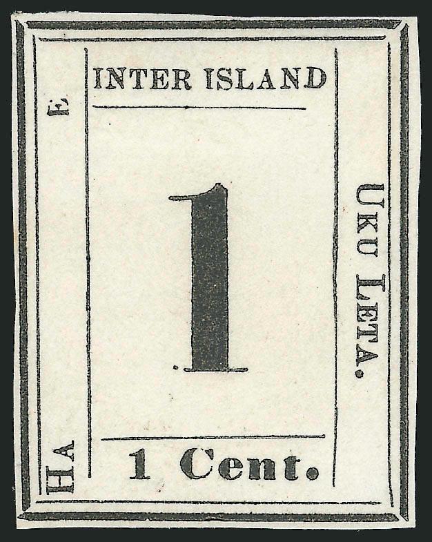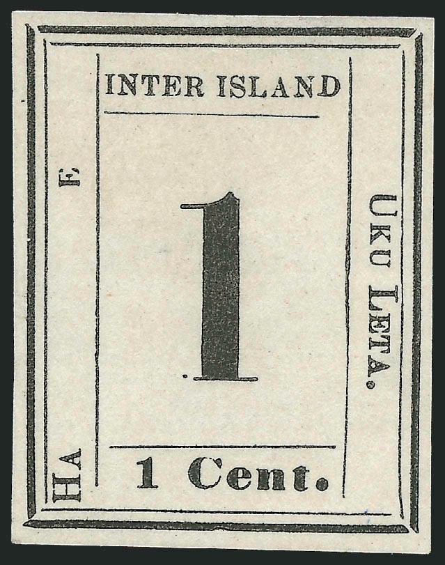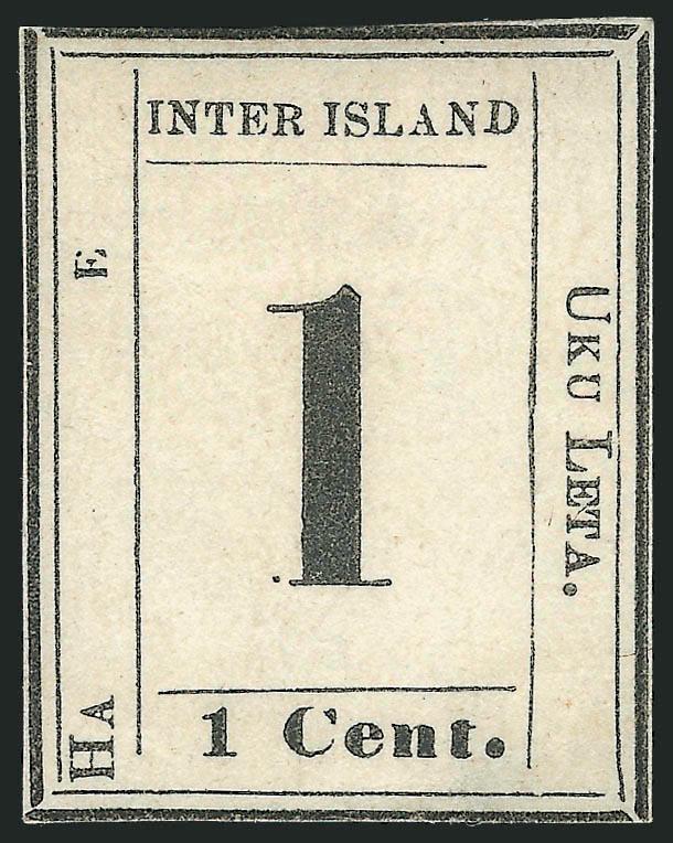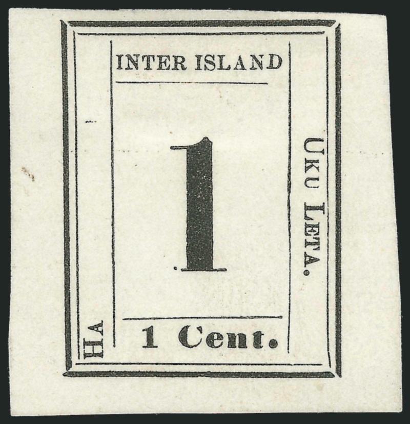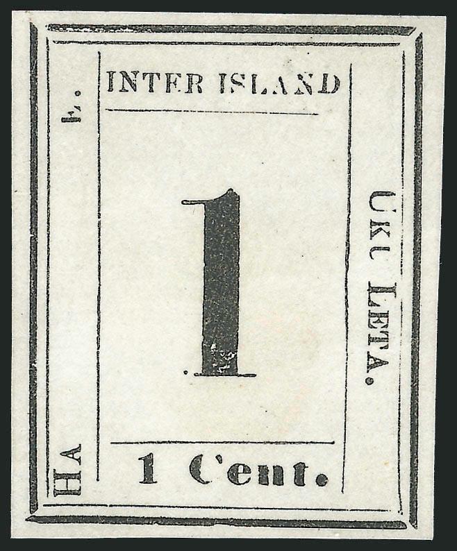 VERY FINE APPEARANCE. A RARE UNUSED EXAMPLE OF THE 1864 ONE-CENT NUMERAL ON LAID PAPER WITH THE "HA" VARIETY AT LEFT. ONLY A FEW ARE KNOWN WITH THE DROPPED "E".