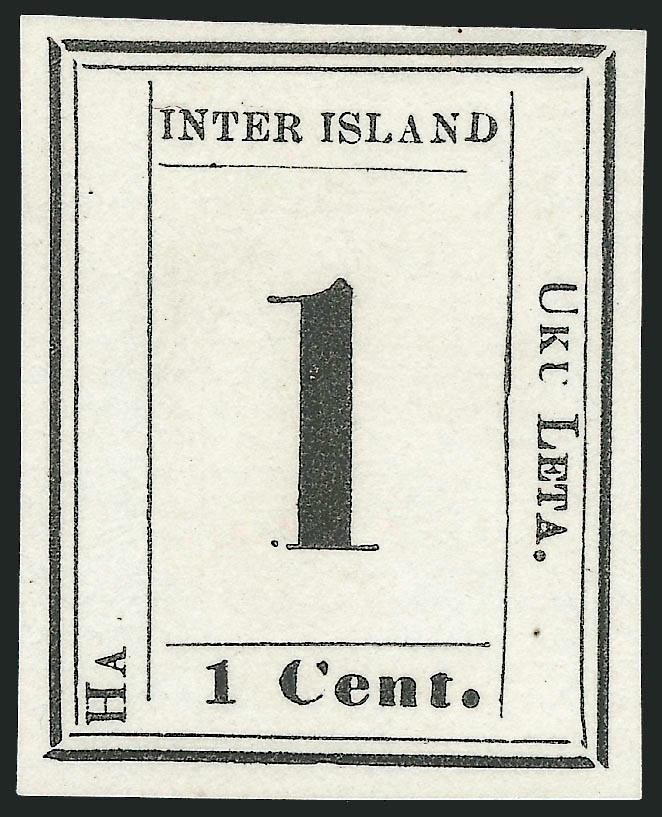 EXTREMELY FINE. A RARE UNUSED EXAMPLE OF THE 1864 ONE-CENT NUMERAL ON LAID PAPER WITH THE "HA" VARIETY AT LEFT.