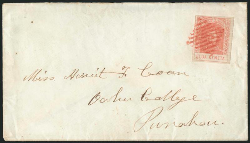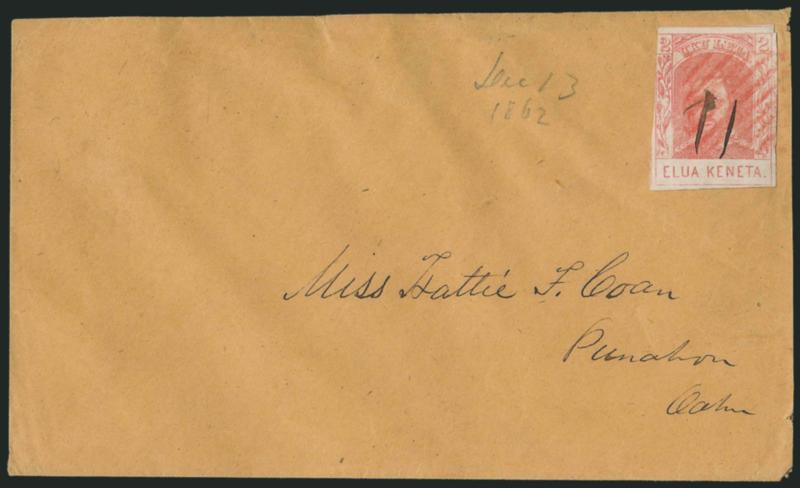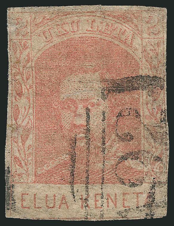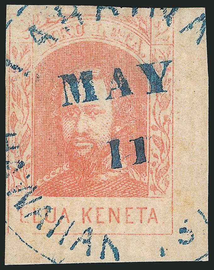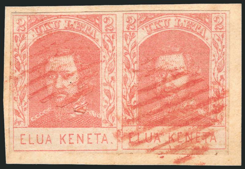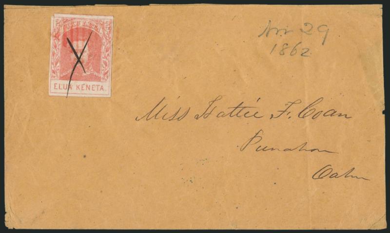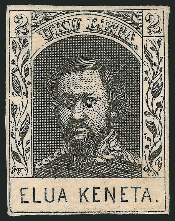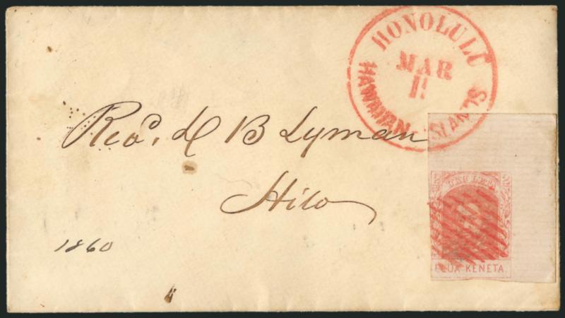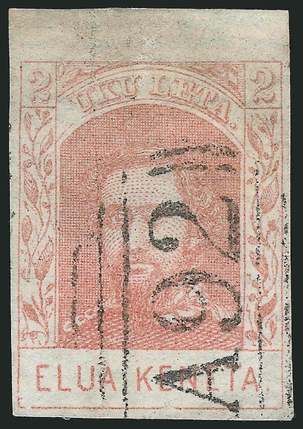 VERY FINE. AN IMPRESSIVE CORNER-MARGIN EXAMPLE OF THE 1861 2-CENT KAMEHAMEHA IV ISSUE ON HORIZONTALLY LAID PAPER.