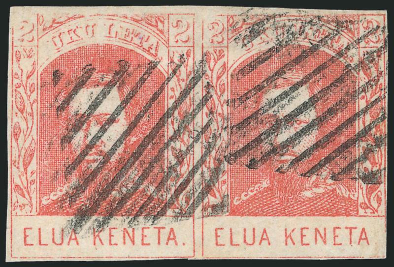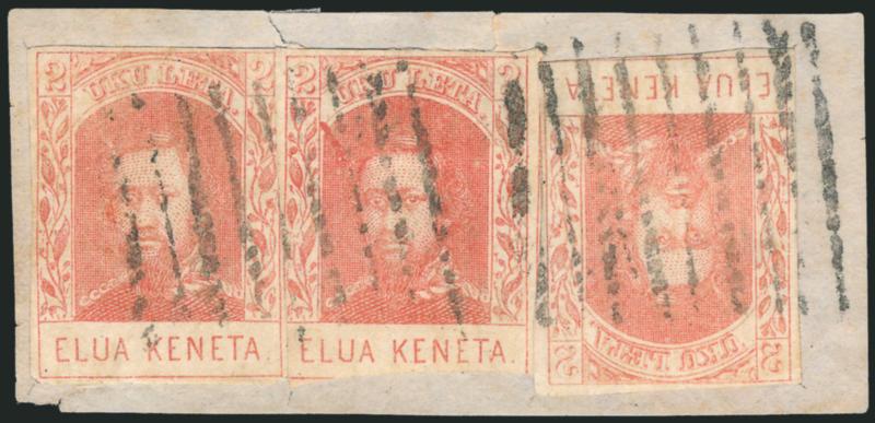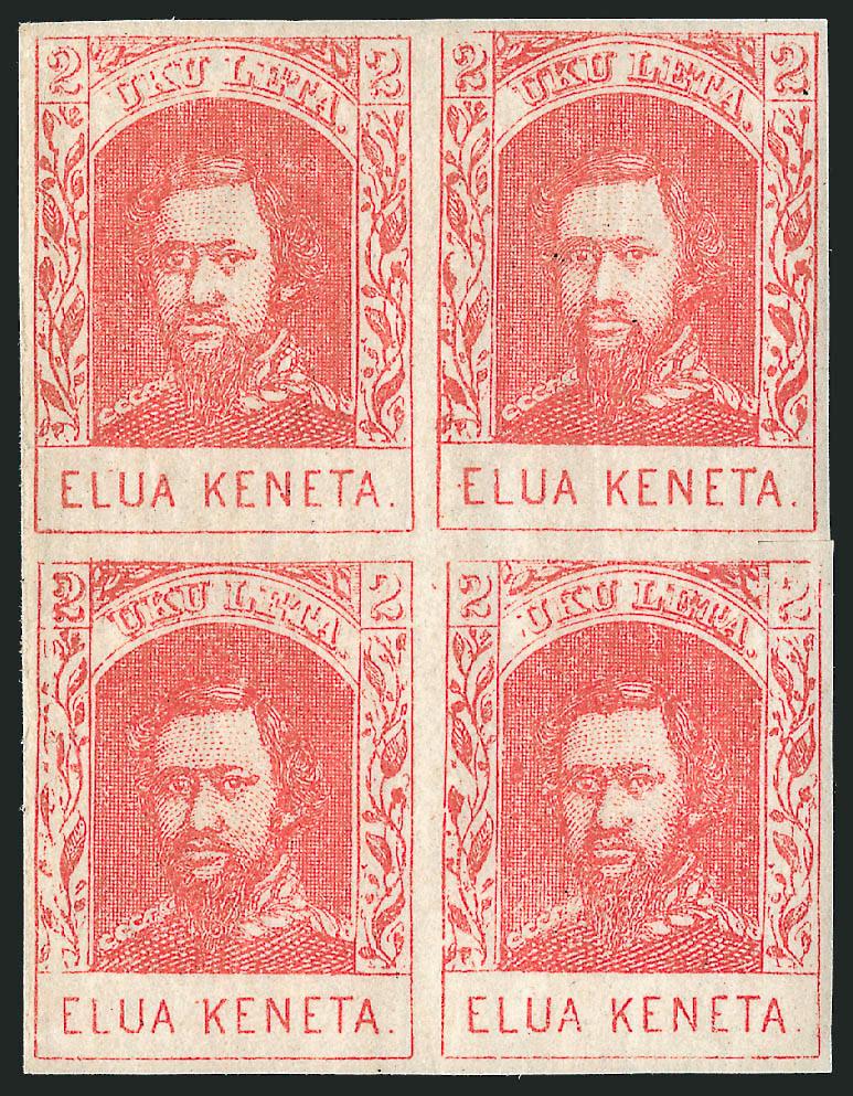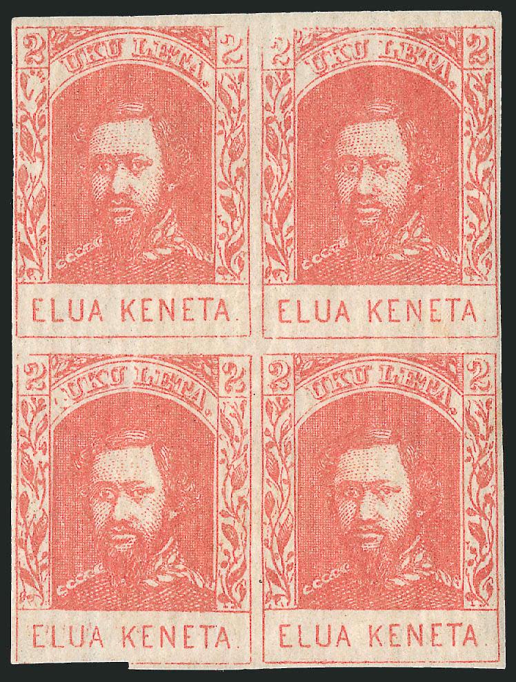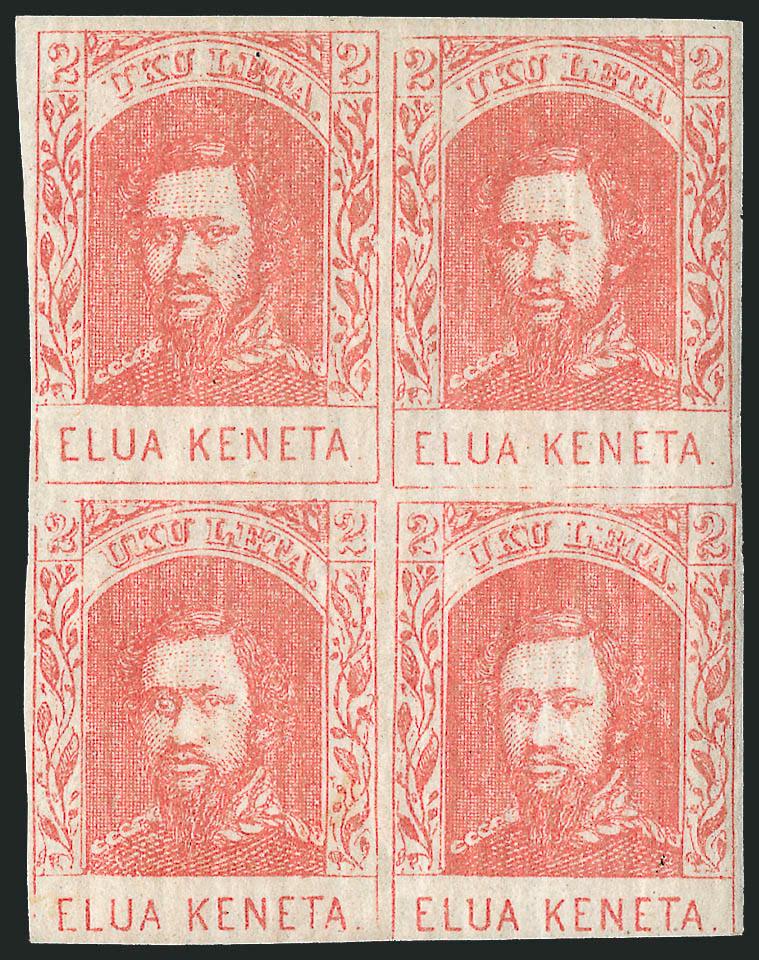 When this block was sold in the 1957 Caspary sale it was described as one of only three known, though we record only this block and the left sheet margin block that is ex Tows, Harris and Honolulu Advertiser. Sometime between 1957 and the 1967 Lilly sale, the left margin of this block was trimmed slightly to make it straighter.