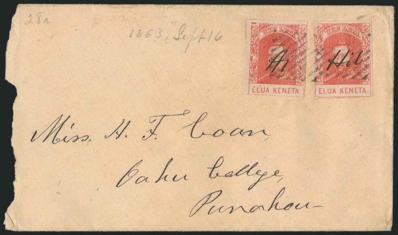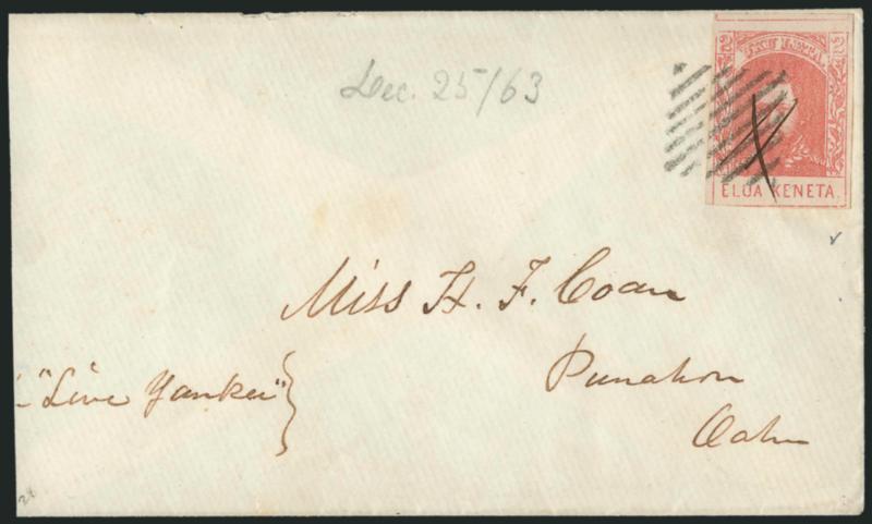 EXTREMELY FINE. A SPECTACULAR AND RARE USE OF THE 2-CENT 1861 KAMEHAMEHA IV ISSUE ON A PATRIOTIC COVER FROM THE COAN CORRESPONDENCE.