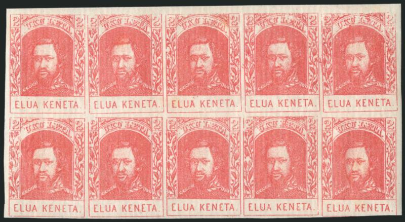 VERY FINE APPEARANCE. A CHOICE AND EXTREMELY RARE ORIGINAL-GUM BLOCK OF TEN OF THE 1863 2-CENT CARMINE ROSE. THIS IS THE LARGEST KNOWN MULTIPLE.