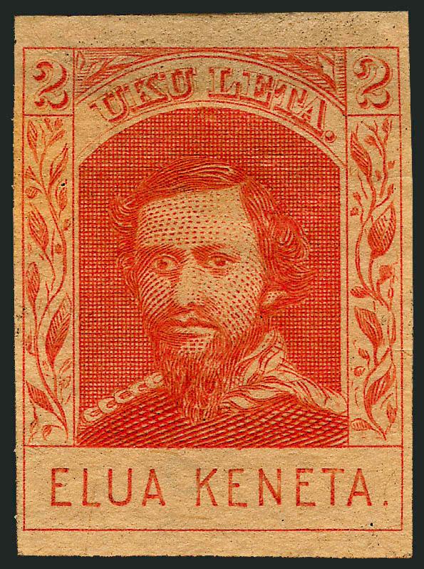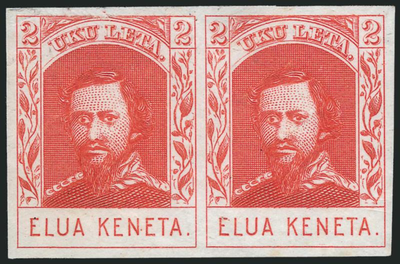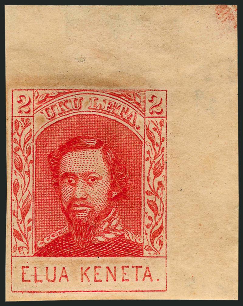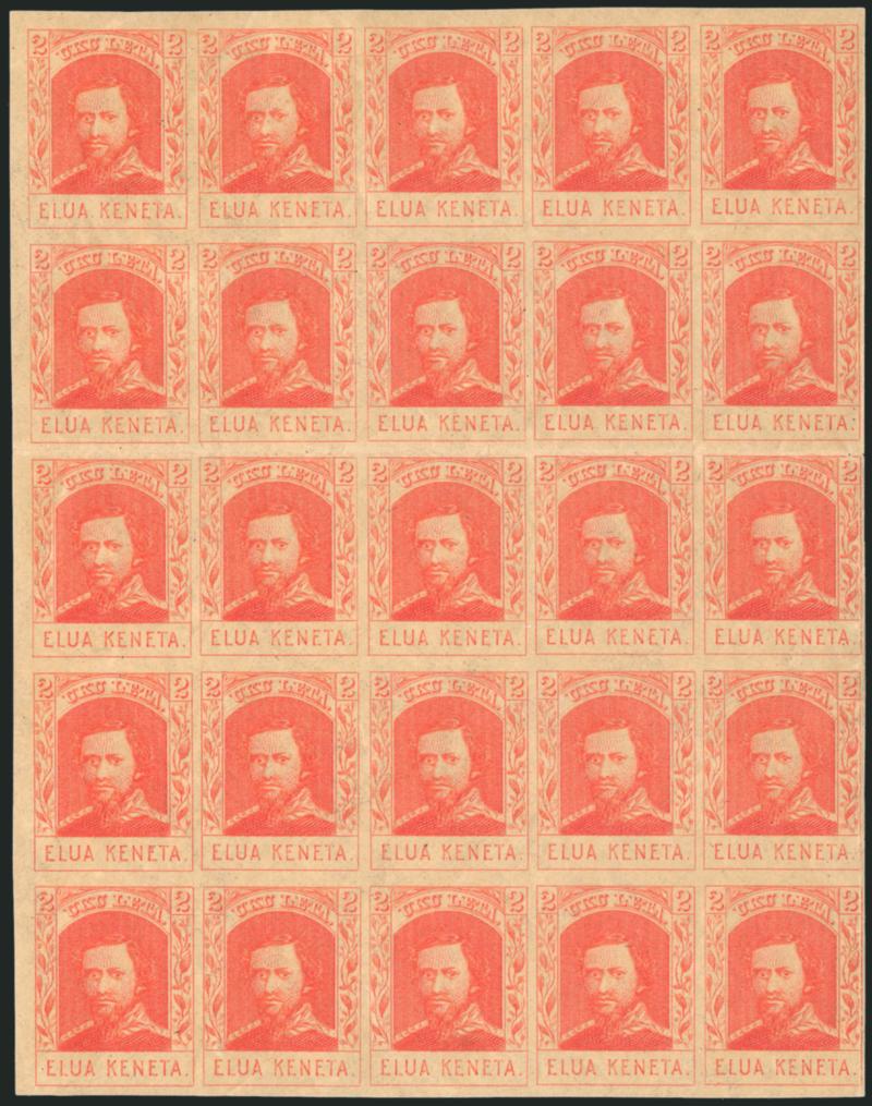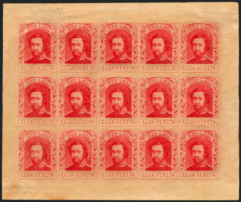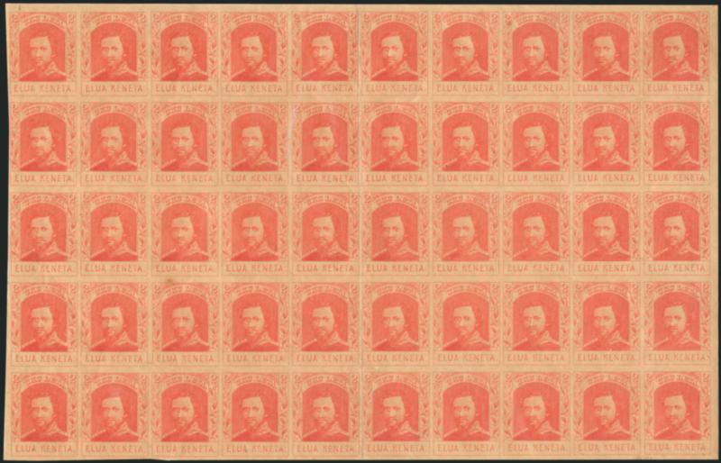 VERY FINE APPEARANCE. AN EXTREMELY RARE COMPLETE SHEET OF THE 2-CENT 1886 KAMEHAMEHA IV REPRODUCTION.