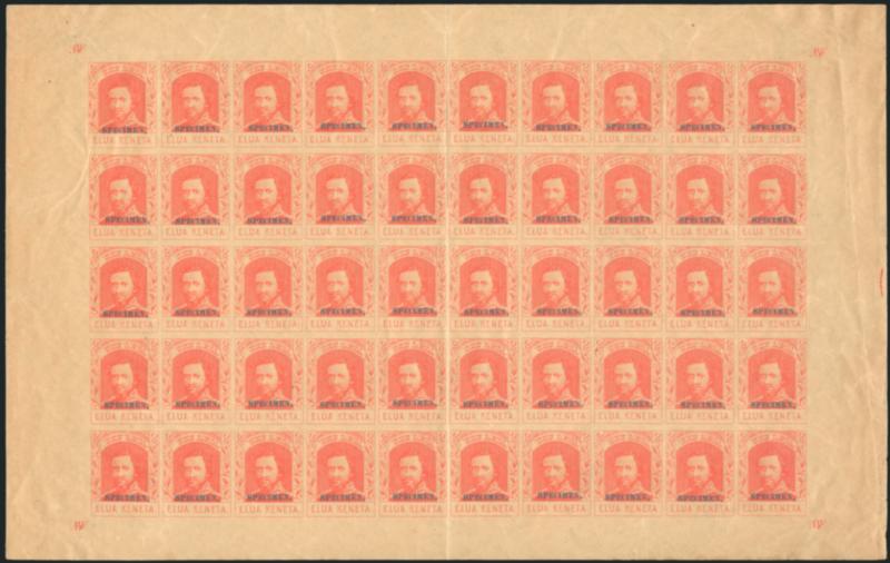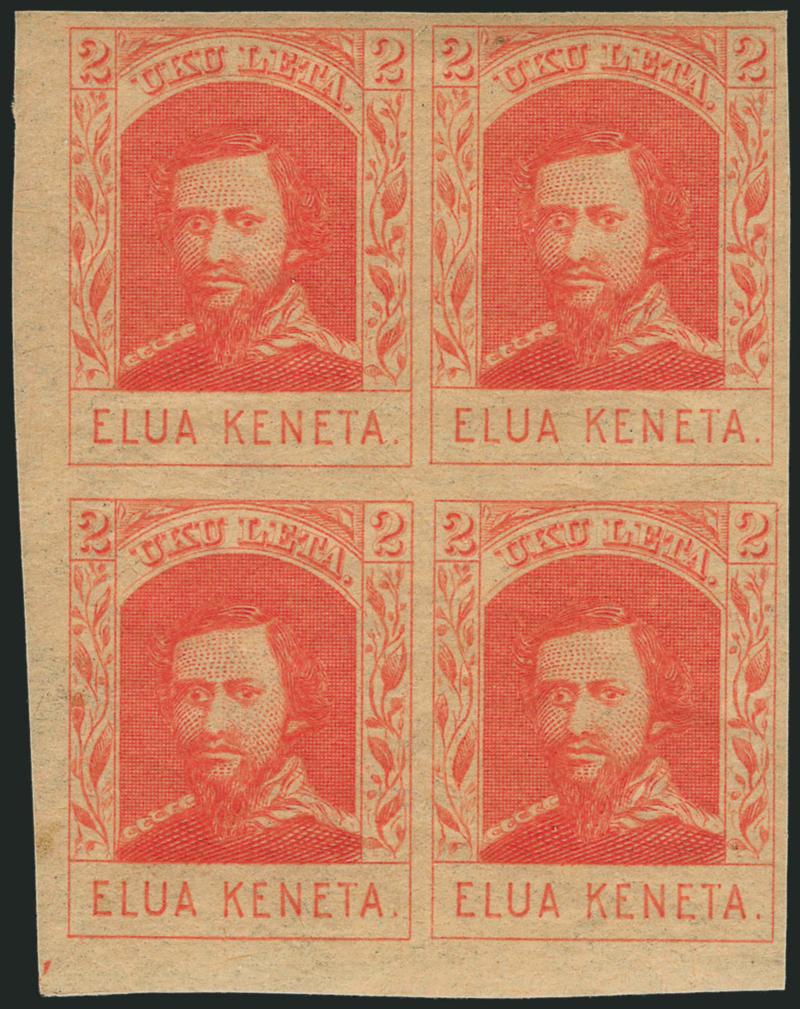 Very few complete sheets are known. We have offered only one other since 1995 and in all of our Rarities sales since 1964 -- the ex Atherton sheet from our Honolulu Advertiser sale. One sheet was offered in the 1948 Tows and 1954 Harris sales, and while it was not photographed, we believe this is the same sheet.